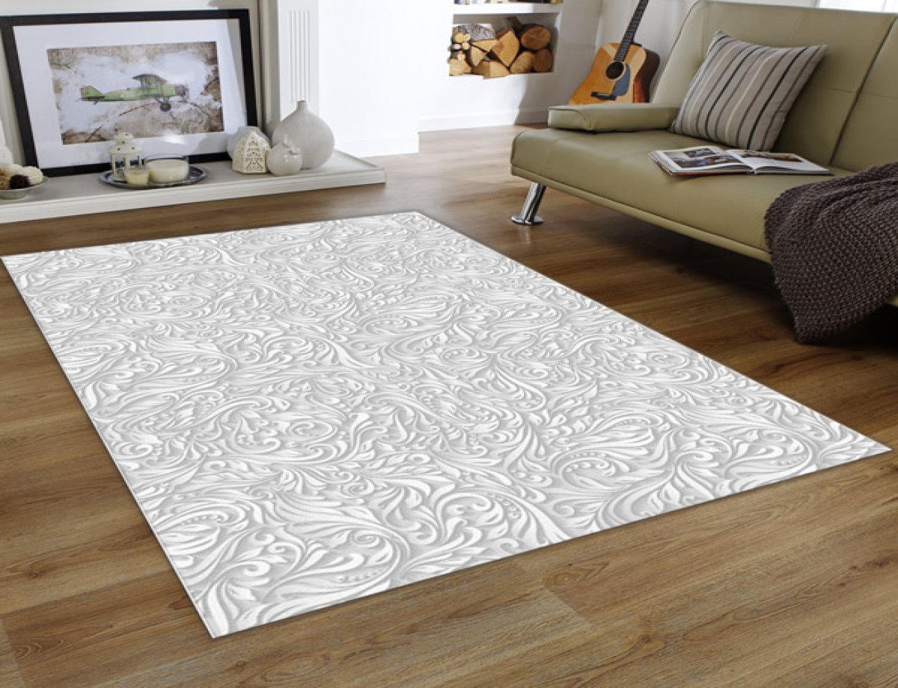 MODERN BASKILI KİLİM 43BEYAZ