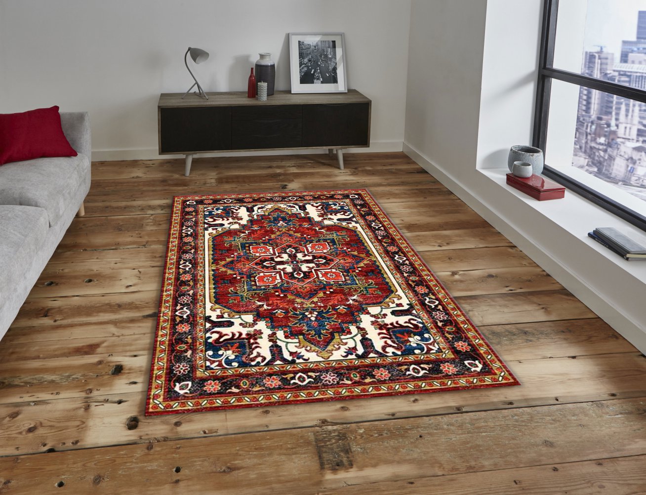 MODERN BASKILI KİLİM 50KIRMIZI