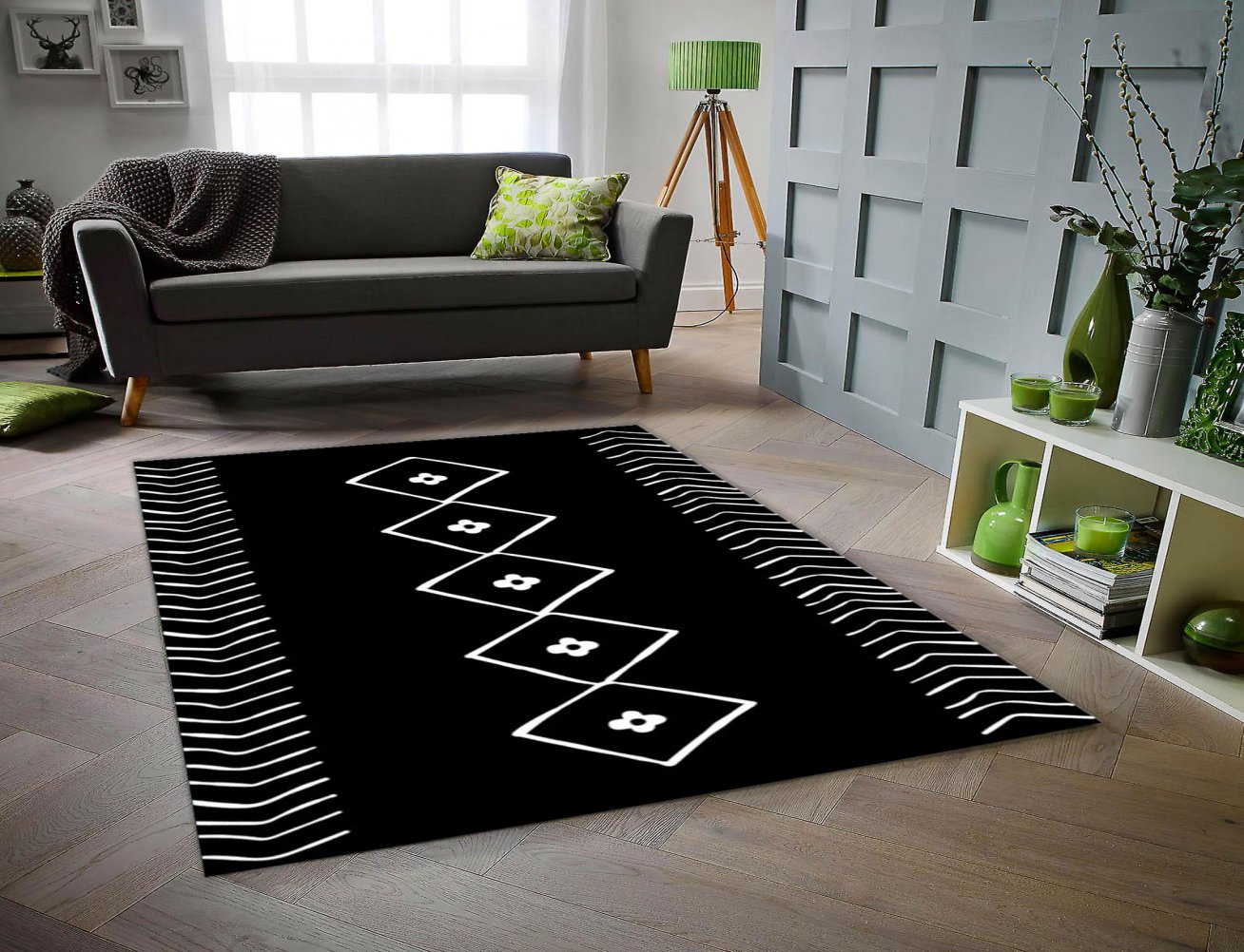 MODERN BASKILI KİLİM 52SİYAH