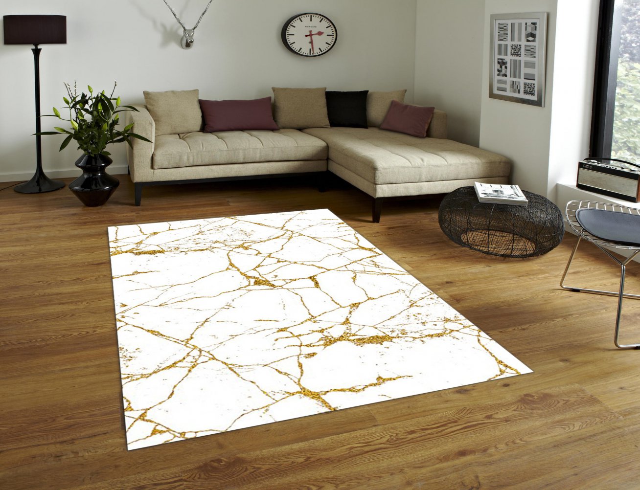 MODERN BASKILI KİLİM 62KREM